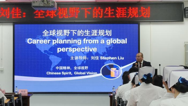 紧接着,刘导师结合自身经历讲述全球视野、外语学习及生涯规划的重要性。他提出全球视野的重要性在于视野与思维时刻与全球同步,在全球范围内找到自己的最佳定位,在全球范围内找到自己的参照物,向行业内世界最顶尖的高手学习!刘导师对同学们提出期待:希望大家有机会在专业领域世界最顶级的学府交流和和学习不断丰富自己的知识结构,丰富自己的全球经历,成为稀缺性人才!而外语的学习可以丰富自身的文化内涵,并且是留学必备。接着,刘导师讲述了生涯规划的11个重要方面:个性规划、心灵规划、思想规划、情商规划、人格规划、魅力规划、理想规划、时间规划、健康规划、幸福规划以及成功规划。