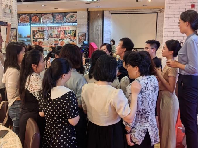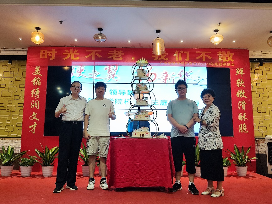聚餐的尾声将至,王庭槐校长、王秀岚院长与于凤兰老师祝贺护理学院18岁生日快乐,并邀大家一起举杯同庆。