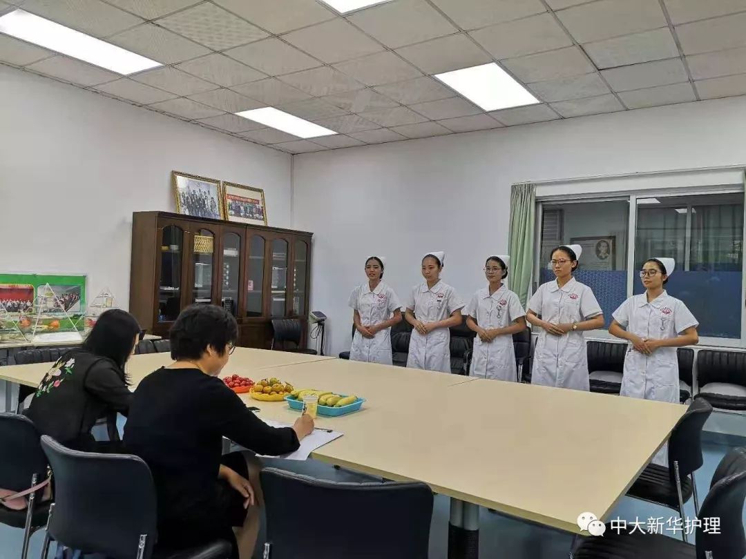 下午三点半,肿瘤医院的面试如火如荼地进行着。面试是分5人为一组进行。面试时,医院老师先提出问题,同学们一个接一个回答,每个人都有发言的机会,一个人发言完毕后,其他人接着补充。其中有一道题是关于急救的问题,同学们都能说出大致的流程,但是老师指出同学们在回答的过程中忽视了顺序性,没有分点地来叙述自己想表达的内容。当老师问到抢救完病人在等待120救护车来交接患者的时候,这个过程我们该如何去做?这样的问题是我们常常容易忽略的问题,老师提醒同学们,像这样的理论知识,学起来没问题,笔试都能写出来,但实际操作起来就都有困难。因此在日常的操作训练中需注重护理的每一个细节。