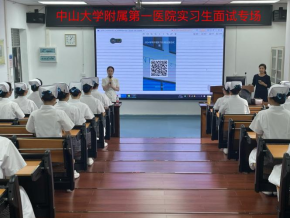 稍作调整后,同学们迎来了紧张的面试环节。面试以10人为一组,在面试过程中,同学们都以自信从容的姿态进行自我介绍,沉着冷静地展现出最好的一面。面试期间,中大附一护理部的龚凤球副主任对面试的同学提出了各个方面的问题,通过学生的回答,能从不同的角度深入地了解学生的思维方式。