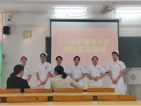 为帮助即将临床实习的2021级学子们顺利求职应聘,2023年10月25日上午,由护理学院组织的2021级A班模拟面试于教学楼C304顺利开展,护理学院2021级学生辅导员梁家翠老师及护理学2021级A班班主任孙凯华老师参加了此次面试并担任面试官。