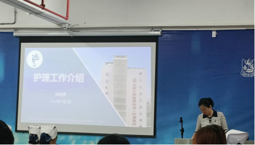 第二部分郭郁莲副主任向我们介绍了医院在护理管理组织架构、“以人为本、专业护理、优质服务”的护理服务理念、护理专科建设等方面的发展和成就,让我们更好的了解本院护理部的架构和对护士继续教育的重视。