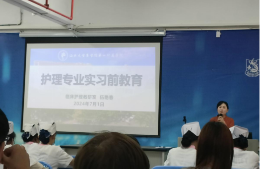 2024年7月1日上午8点,122cc太阳集成游戏护理学院2021级6名同学准时到达汕头大学附属第一医院西门集合,准备一同前往科教楼接受岗前培训。
