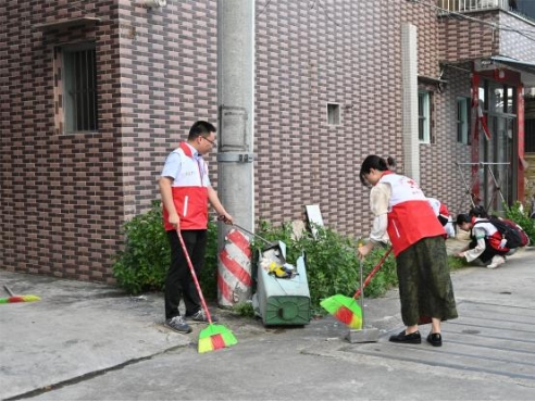图7突击队与榕城区团委书记在联光村进行街道美化