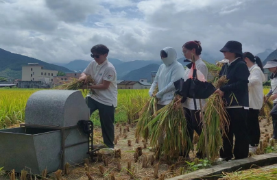 为了深入学习和贯彻党的二十大报告精神,实践队深入良平村的田间地头,开展了一场别开生面的割稻研学体验活动。在活动中,负责人黄柱根为实践队成员提前准备好了锋利的镰刀,确保每位队员都能有趁手的工具进行实践。黄柱根左手握住稻子,右手紧握镰刀,留下约20cm的稻桩,以便于后续的土壤管理和稻茬的再利用。成员们手持镰刀,站在稻田里,汗水顺着队员们的脸颊滑落,浸湿了衣衫,但他们却浑然不觉。他们的注意力完全被手中的镰刀和脚下的稻田所吸引,每一次割稻都像是在进行一场神圣的仪式,表达对大自然的敬畏与感激。此外,成员们还亲身体验了打谷的过程,随着打谷机的运转,稻穗与工具之间、脚与踏板之间发出有节奏的碰撞声,那是丰收的乐章,是劳动的歌声。稻谷如雨点般落下,打谷桶内渐渐堆积起了一层又一层的金色宝藏。队员们的脸上洋溢着满足与喜悦,他们仿佛看到了自己亲手参与的劳动成果正在慢慢凝聚成形。在这个过程中,队员们深刻体会到了农民伯伯们“面朝黄土背朝天”的艰辛与不易,也更加珍惜每一粒粮食的来之不易。