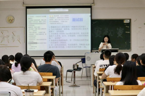 随后,吴婉钿同学与大家分享了她的实习经验。她细致耐心地介绍了各医院的面试报名条件和面试问题,帮助大家更清晰地了解了医院实习面试的注意事项。吴婉钿鼓励大家以积极的心态面对实习面试,避免不必要的焦虑。在随后的答疑环节,吴婉钿同学热情地解答了同学们的疑问,并为她们未来的实习面试提供了宝贵的建议。