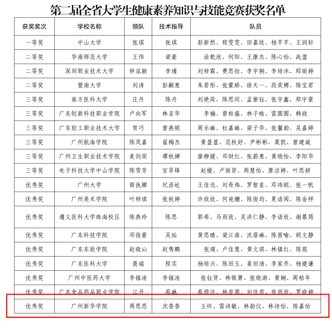 本届赛事紧密围绕“提升大学生健康素养”的核心目标,致力于为国家健康战略培养高素质人才。自赛事启动以来,我校积极响应号召,鼓励师生参赛备赛。校内选拔中,“梦想起航队”凭借扎实的知识储备和出色的团队协作能力脱颖而出,顺利晋级省赛。在省赛中,广州新华学子与来自中山大学、暨南大学、南方医科大学等高校的学子同台竞技,荣获佳绩,充分彰显了我校在健康素养教育领域的育人成效。