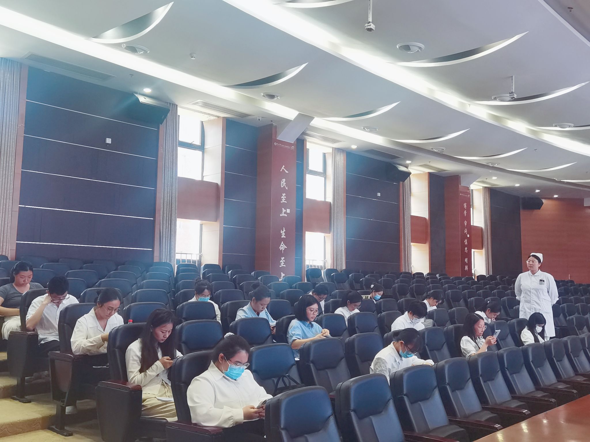 在护理技能笔试现场,护理学院的“学霸们”以满腔的热情和严谨的态度参加考试。他们聚精会神地坐在多媒体教室里,细心作答,充分展现他们扎实的知识储备。这场景,简直就是“学霸的战场”!