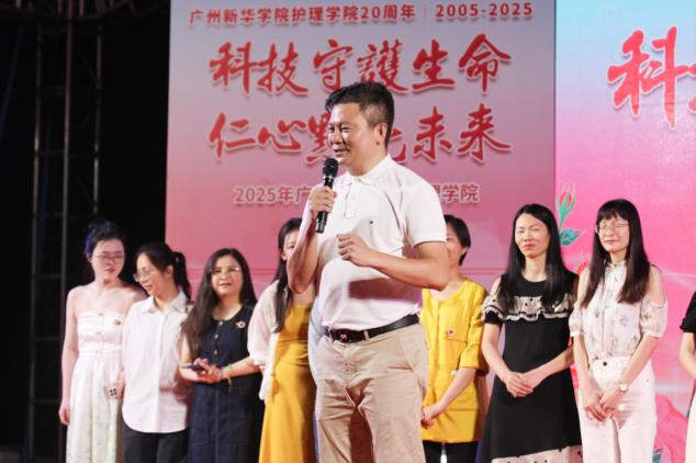 王庭槐校长在致辞中表示今年我国护士节以“关爱护士队伍,守护人民健康”为主题,这既彰显国家对护理队伍的关怀重视,也诠释护理工作者守护健康的使命。恰逢学校及护理学院办学二十周年,他代表学校向护理一线教师致以崇高敬意,向护理学院全体师生送上美好祝福。最后,他期望同学们以榜样为标杆,用爱心、耐心、信心与责任心对待患者。