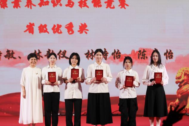 护理学院执行院长王秀岚为获得广东省第二届全省大学生健康素养知识与技能竞赛省级优秀奖的获奖代表颁奖
