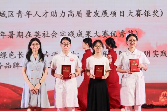 护理学院党总支副书记钟婉为2024年广东大中专学生志愿者暑期文化科技卫生“三下乡”社会实践活动暨广东青年大学生“百千万工程”突击队行动中表现优秀的团队颁奖