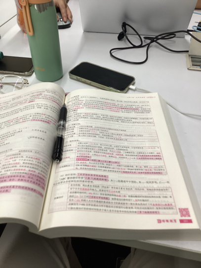 英语备考则贯穿全程,她坚持 “每日背单词、刷真题、学长难句” 的 routine,从基础积累到技巧提升,逐步突破英语难关。政治复习虽起步较晚(十月份开始),但她精准抓重点,结合时政热点梳理考点,最终聚焦肖八、肖四等核心资料集中背诵,高效完成政治备考任务。