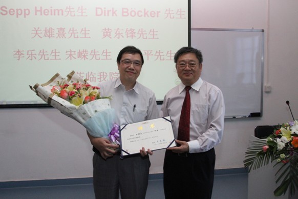 图4:赛•海姆教授从王庭槐院长手中接过客座教授聘任证书