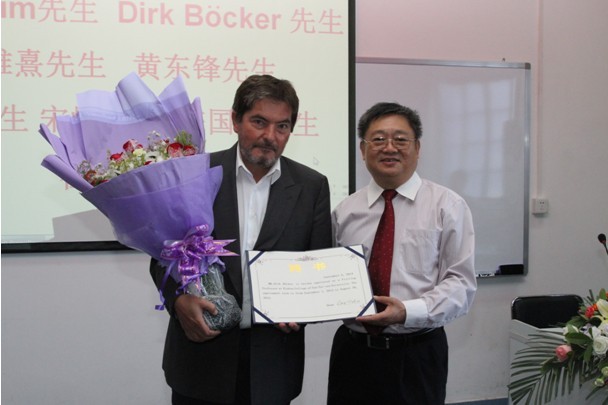 图5:迪克•波克先生从王庭槐院长手中接过客座教授聘任证书