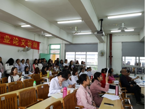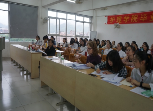 护理学院于2019年5月6、7、8、9、10、13日分别在教学楼C501、C502教室开展了2019届护理学专业全体本科生毕业生论文答辩工作。本次答辩共分为48个小组进行(每场12-13位答辩同学),答辩整体情况良好。