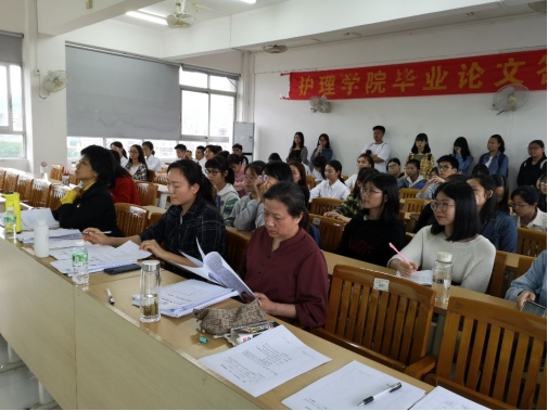 毕业生论文答辩全面检查了学生毕业论文情况,考察了学生对理论知识掌握程度以及学生的独立实践和综合分析的能力。是检验学生综合素质与实践创新能力的有效途径。本次答辩是毕业生对大学学习成果的总结,也为其升学和就业打下了良好基础,亦意味着大学生活即将画上句号。希望护理学院2019届的同学们,始终能够以自强不息、勤奋好学的精神为思想指导,在专业的学习上越走越远。