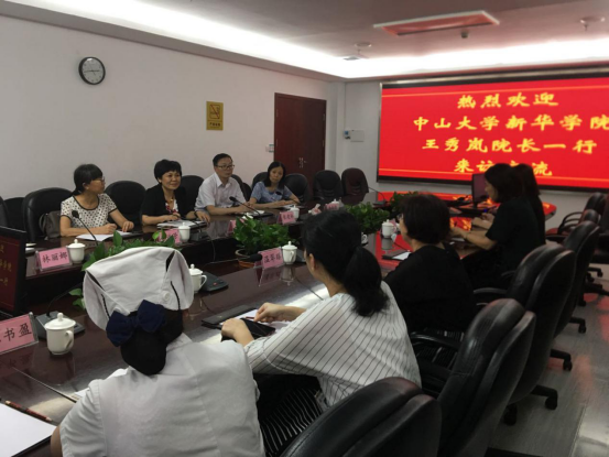 为了加强与实习基地及医院用人单位的沟通与交流,促进我院护理本科教学改革与发展。2019年7月9日下午,中山大学新华学院(下面简称“中大新华”)护理学院执行院长王秀岚教授、张建林教授、郭运芳副教授、林丽娜老师、黄洛莹老师一行到汕头大学医学院第一附属医院开展实习基地建设及毕业生质量调研工作,汕头大学医学院第一附属医院护理部张红副主任、护理系温嘉琪主任,黄雪琴主任、郭郁连老师、实习生班主任欧阳晓娜老师等参加座谈会。