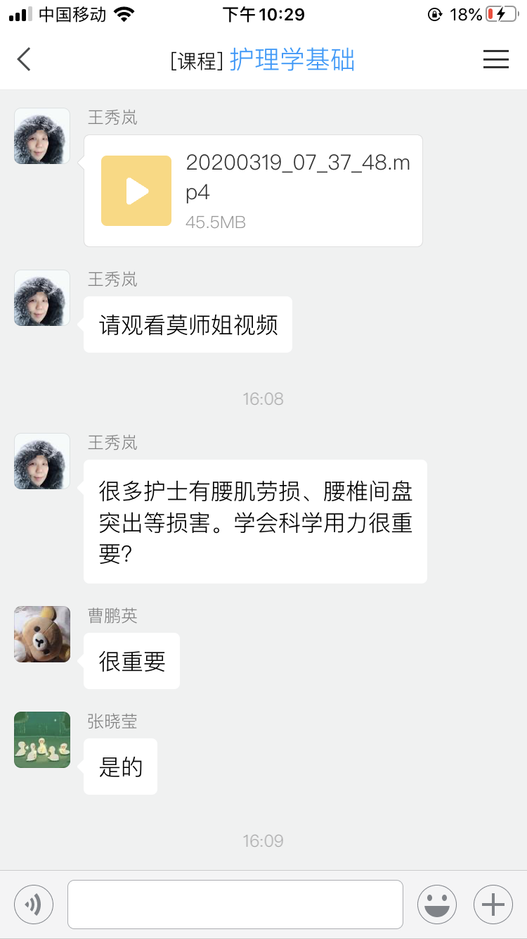 2020年3月19日,中山大学护理学院执行院长王秀岚在为学生讲授本学期《护理学基础》课程的“入院和出院护理”章节中的人体力学的运用时,事先联系了已毕业的护理校友,邀请他们分享临床护理操作过程中运用到的人体力学原理。强大的校友团队为护理学院提供了真实而宝贵的实践经验。