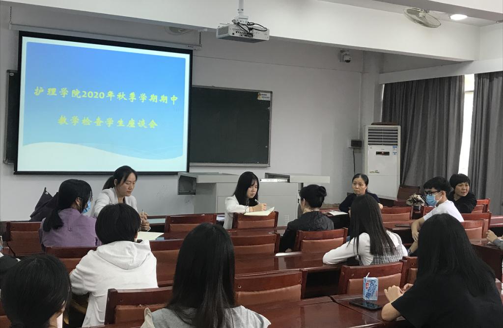 根据《中新教务〔2020〕25号-关于开展2020学年第一学期期中教学检查工作的通知》,按照学校2020年工作要点,响应“强化教学意识,加强教学过程管理,保证人才培养质量”的文件精神,护理学院于2020年11月4日11点至14点在教学楼C204召开了2020学年秋季期中教学检查学生座谈会,本次会议由主管教学副院长陈千主持,执行院长王秀岚、副院长黄洛莹、办公室主任周玲及2018-2020级辅导员携各年级学生代表出席了会议。