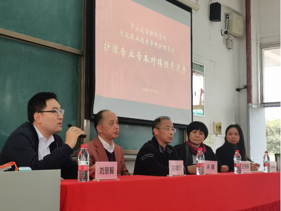 根据广东省教育厅关于开展高职院校和本科高校协同育人的文件精神,本着“优势互补,共同发展,合作双贏”的原则,我校与清远职业技术学院于2019、2020年联合开展了三二分段协同育人的项目,为推进合作项目的进一步落实,12月9日下午,护理学院执行院长王秀岚、招生办公室主任刘景毅、护理学院党总支副书记庄添、办公室主任周玲一行四人赴清远职业技术学院参加护理专业专本对接班交流会。
