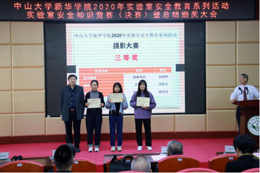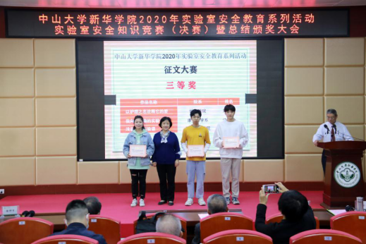 为深入贯彻《广东省教育厅关于高等学校实验室安全建设与管理规定(修订)》相关精神,将实验室安全知识运用到学习及科研工作中,提高全校师生实验室安全意识并建立长效机制,打造平安新华,共建和谐校园,我校开展了以“牢筑安全防线 消除事故隐患”为主题的2020年实验室安全教育系列活动。活动内容主要包括“我爱实验室”摄影大赛、“我理想中的实验课”征文比赛和实验室安全知识竞赛等。12月29日上午,2020年实验室安全教育系列活动实验室安全知识竞赛(决赛)暨总结颁奖大会在我校广州校区D101举行。