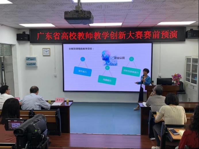 本门课程是我校唯一进入省决赛的课程,获得了学校的高度重视,2021年4月7日上午10点,广东省高校教师教学创新大赛赛前预演在我校护理学院实验实训中心顺利进行,教务处牵头邀请了南方医科大学原教务长陈立明、广州医科大学张超教授、李锦新教授三位专家及潘敬运督导出席给予专业性指导意见,学校主管教学领导李中生副校长、教务处尹小川处长、陈宝琪副处长也到场支持。各位专家和领导肯定了本门课程建设的特点以及王秀岚院长说课中的感染力,并针对汇报内容的提出了相应的改进措施,使之更为完善。