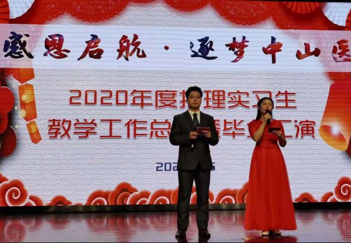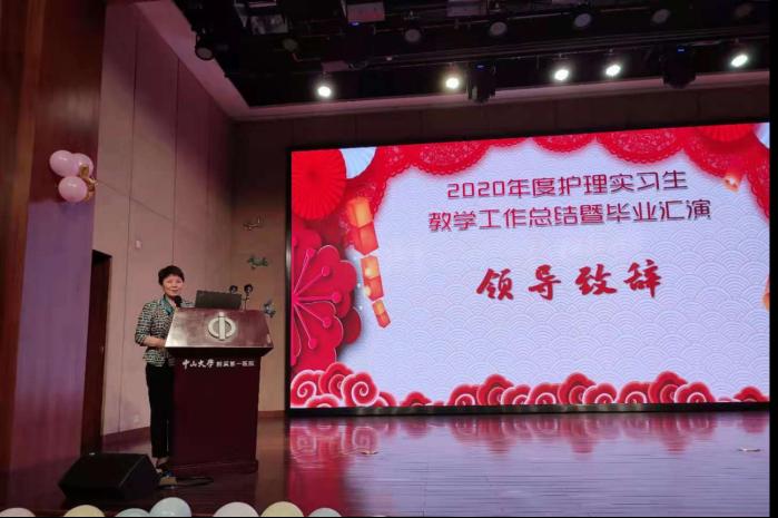 2020年4月17日下午,我校护理学院王秀岚院长受邀参加中山大学附属第一医院(以下简称中大附一)2020年度护理实习生教学工作总结暨毕业汇演大会。参加会议人员有中大附一成守珍主任、陈利芬主任、柯彩霞老师、各科护士长和带教老师、各校实习指导老师以及全体实习护生。我校实习生赵炫玮同学担任晚会主持人。