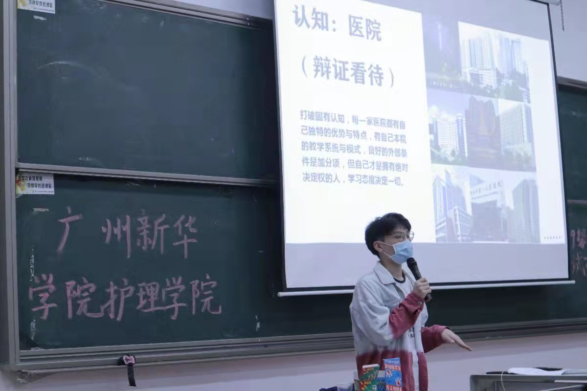 为了让同学们学习面试经验、提高面试技巧、明确面试目标,从而更好的准备本学期医院实习面试。2021年10月15日晚,由护理学院承办的新华学子讲坛在教学楼D304举行,主题为《话护理实习心声,续新华护理传承》。