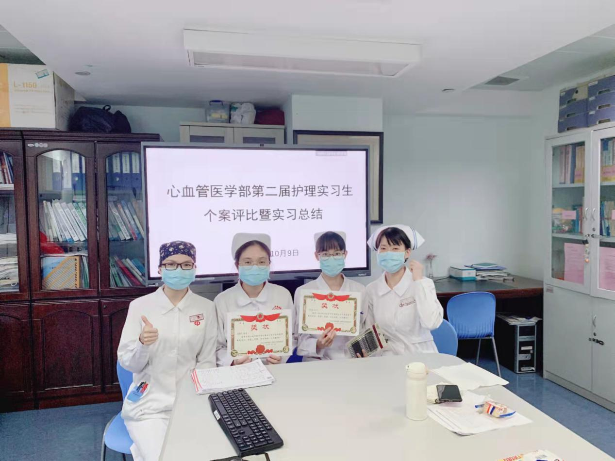 实习过程中儿科总带教老师为了进一步提升我们的操作技能,还开展了临床操作技能情景模拟。在众多学校实习生面前演练青霉素皮试配置与操作除了需要对整个操作流程十分熟悉、上手,还需要心静手稳,无惧众人目光的关注。正是因为平时自身有多加练习精美书皮试的操作,对自己的操作内容有信心,因而在情景模拟展示的时候能够得心应手。心血管医学部的老师们为了拓展我们的知识视野,特地为我们举办了一次实习生护理个案评比大赛,在书写个案护理的过程除了多学习到不同疾病和疾病护理的理论,还锻炼到自己制作个案演讲PPT的能力、自身演讲的表达能力以及面对比赛或在众人面前演练时那份沉稳的心态。