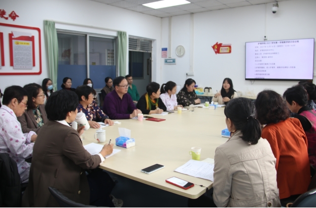 12月16日,护理学院在笃行楼三楼护理实验实训中心会议室召开了2021年第一学期教学研讨会,会议由学院副院长黄洛莹主持,学院党政领导及全体教职工参会。
