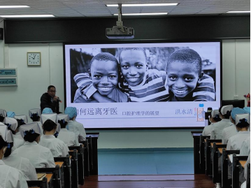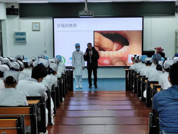 紧接下来,洪水清医生为同学们展开了口腔护理学的内容。首先向同学们介绍了口腔护理的概念,包括了护理环境,科普场景和口腔护理的培训。同时同学们也观看了口腔护理的操作,用“行云流水”形容口腔护理操作全过程。洪水请医生还对我国目前现代口腔专业护理和服务情况进行分析,包括我国近年来的有关口腔医疗国家层面政策、口腔专科医院数量及增长情况、口腔医生数量、世界主要国家牙科助手教育概况以及口腔护理未来就业前景。经过洪水清医生详细生动的讲解,同学们对口腔护理学这门学科有了进一步的了解,也关注到我们国家口腔护理的基本情况。