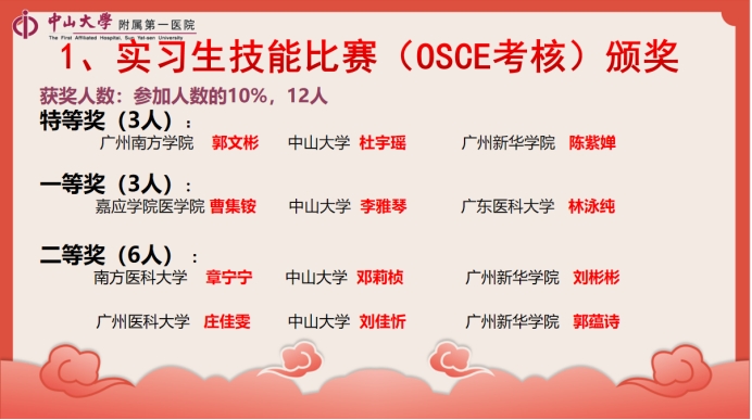 图一:中山大学附属第一医院实习生技能大赛颁奖名单