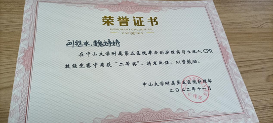 本次赛前,来自17个学校的护理实习生们踊跃报名参加。各个学校积极备战,认真练习实操技能及理论知识,最终共有13支队伍进入比赛。比赛现场,大家精神饱满、全情投入,沉着冷静地完成了一系列的急救技能操作,流程规范,动作娴熟,展现了出色的表现。三位评委从心搏骤停的判断、胸外按压的深度、回弹、按压频率、开放气道、清理呼吸道的方法以及气囊的通气手法和复苏效果的评估等细节进行评分。经过激烈的角逐,最终,魏婷婷和刘钰冰同学均取得了优良的成绩,在13支队伍中脱颖而出,最终荣获二等奖。