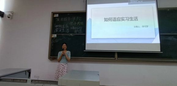 讲座开始,梁家翠老师为在座的各位20级护理学子讲解即将到来的临床实习的紧迫性,同时也就即将到来的临床实习生活做了个大概的描述。梁家翠老师紧接着就实习生活的情况为在座的各位同学进行了讲解。随后由李可梦师姐为20级护理学生开展适应实习生活的经验分享。
