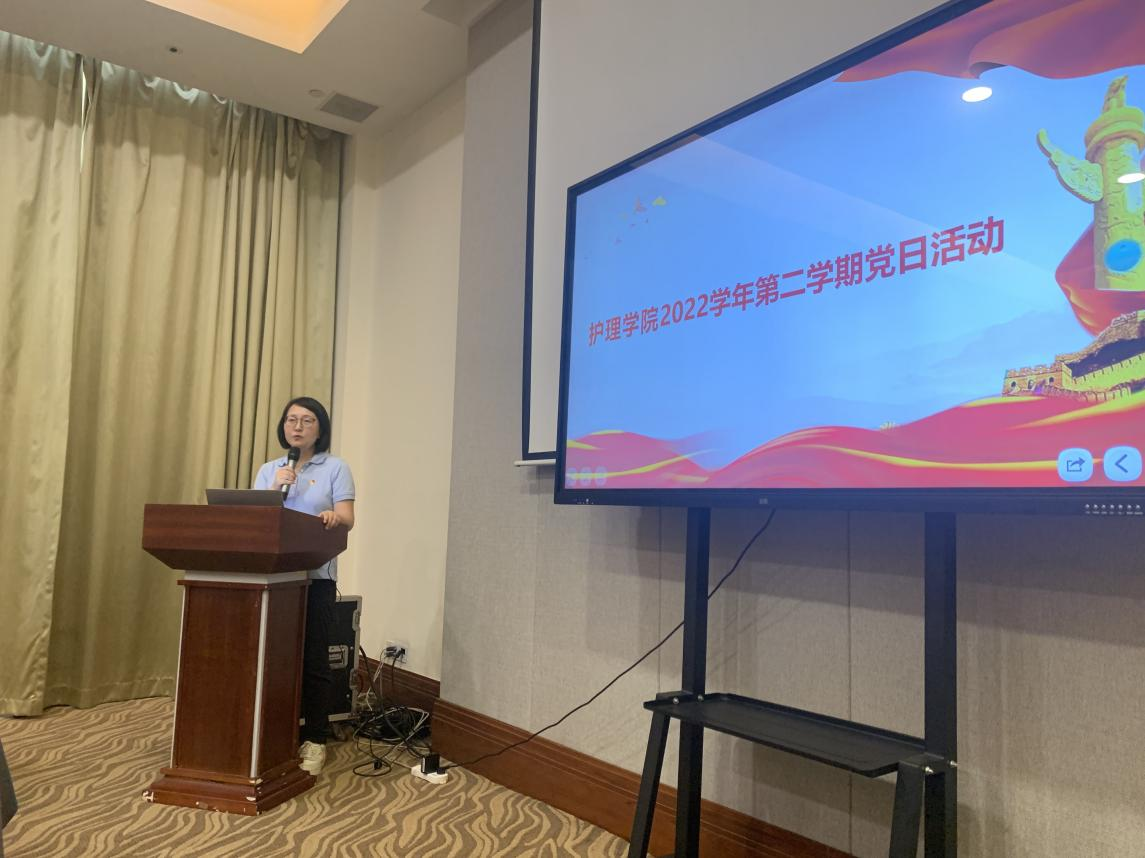 图一:护理学院教工党支部书记汪丹老师主持党日活动