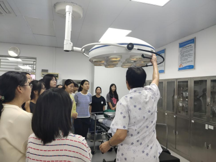 会议结束后,同学们在于凤兰老师、黄廷芬老师、莫谈健老师的带领下先后参观了基础实训室、内外科综合病房、儿科综合病房、ICU重症监护室、模拟产房和模拟手术室,除了介绍各室的功能和作用外,还着重讲解了实验室的所有安全通道。参观中,同学们充满好奇与兴趣,对实验室的先进仪器设备、整洁程度发出接连不断的赞叹,大家也因此对护士所要具备的卫生素养有了深刻的认识。