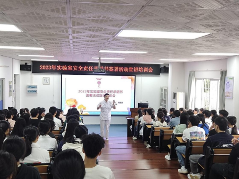 在示教室里,新生们在黄廷芬老师的介绍下充分熟悉并签署了安全责任承诺书,坚定对知识追求的同时也要准守学校各个实验室安全管理制度确保自身安全。
