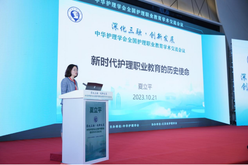中华护理学会护理职业教育专业委员会主任委员夏立平教授就“新时代护理职业教育的历史使命”进行大会交流。