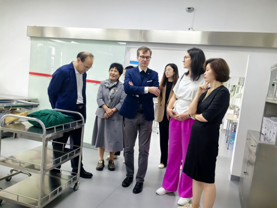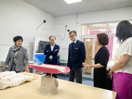 接下来,王秀岚院长带领各位领导参观了基础护理实训室、内外科综合实训室、模拟儿科综合病房、重病监护病房等实验室。参观交流过程中,来宾对我院实训中心的规范和实用性给予了高度的评价,双方均期待未来有更深层次的人才联合培养等合作。