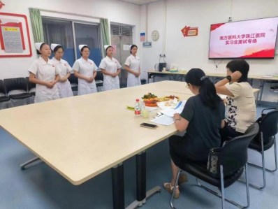 参加面试的同学们穿着得体,精神焕发,自信满满地等待面试。在热切的期盼中,珠江医院毛惠娜总护长和王梅护士长来到了护理学院,护理学院王秀岚院长、黄洛莹副院长以及各位老师们对两位老师的到来表示热烈的欢迎。