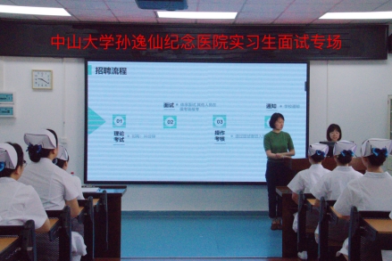 面试开始前,中山二院的老师向同学们介绍了本次面试共分为笔试、面试和实操三个环节。9:30笔试正式开始,拉开了本次实习招聘的帷幕。同学们专注地完成考题,半个小时的笔试,他们充分展现了自己扎实的知识基础、严谨和专业的态度。