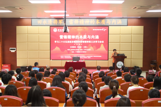 “雷锋精神不是突然冒出来的”,雷锋的成长有三部曲:做个好农民、好工人、好战士。不到二十二年的时间,他在故乡当农民、在鞍钢当工人、在部队当战士。田将军号召同学们向雷锋学习,做个有有目标、志向的青年。他分享了自己的人生“三目标”:“统一梦、强国梦、百岁梦”,以此勉励同学们也要树立自己的梦想和追求。田将军还通过雷锋身边的三个同志——冯健大姐、王佩玲同志、易秀珍工友对雷锋的评价,多角度展现了雷锋的形象。