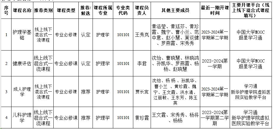附件:护理学院2024年校级一流本科课程申报推荐汇总表