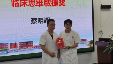 余金吨老师(2013级校友)为蔡明辉颁发“临床思维敏捷奖”证书