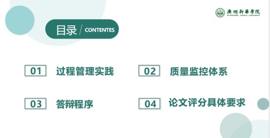 毕业论文的撰写与答辩是人才培养的一个重要环节,过程反映了学生对基本理论、研究方法的掌握程度、实践能力和综合分析的能力。答辩过程使论文写作与论文管理更加规范、科学、严谨。会议开始何洁凝老师针对答辩过程管理实践、质量监控体系以及答辩程序进行了讲解。