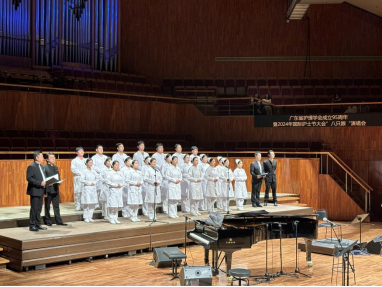 为全面贯彻落实党的二十大精神,积极响应健康中国战略,广东省护理学会与广东省岭南南丁格尔护理研究院携手于2024年5月6日在广州隆重举行广东省护理学会成立95周年及国际护士节大会。此次大会旨在表彰先进典型,发挥示范引领作用,激发广大护理工作者的积极性和爱岗敬业精神,进一步弘扬南丁格尔精神,推动护理事业的持续发展贡献力量。作为护理行业的新生力量,122cc太阳集成游戏护理学院2022级D班的23位同学受邀前往星海音乐厅参与广东省护理学会成立95周年暨2024年国际护士节大会天使赞歌“八只眼”组合演唱会,与八只眼乐队合唱《中国护士之歌》,展示了护理学学生的风采。