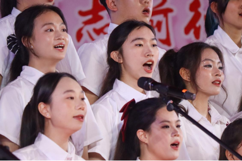 在晚会即将拉开帷幕之际,护理学院2022级7班的同学们以其悦耳的歌声为晚会进行暖场。众人纷纷响应,融入这充满青春活力的合唱之中,轻快的旋律在夜空中回荡,为现场营造出浓郁的晚会氛围。夜幕低垂,繁星闪烁,那首歌的每一个音符都如同璀璨的星辰,熠熠生辉,照亮着现场每一位观众内心深处的温柔与诗意。