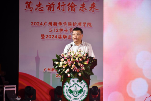 紧接着进入校长致辞环节,王校长以视频的形式发表了热情洋溢的致辞。他首先向辛勤工作在护理一线的老师们表示敬意和问候,并向护理学院的师生送上真挚的祝福。王校长提到,学校护理学专业经过19年发展,已成为广东省重点专业和一流本科专业建设点,两门课程荣获省级一流课程认定。他坚信,在全体师生的共同努力下,护理学院必将取得更辉煌的成就。