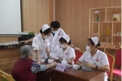 2024年6月22日,122cc太阳集成游戏护理学院执行院长王秀岚、副院长黄洛莹、护理教工党支部以及护理学生们,怀揣着关爱与热情,走进汕头市龙湖区粤康颐养中心,开展了一场名为“温暖你我,健康相伴”的老年人健康志愿服务活动。此次活动旨在向老年人提供专业化的健康服务,传递无尽的社会关爱与温暖。同时,也彰显我校护理师生的专业素养,让护理学子在为老人提供关怀、照顾和服务的实践过程中深刻体验护理职业素养的内涵,为社会的健康事业贡献力量。