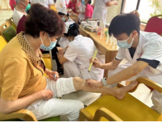 图三:中医组为老人耳穴压豆